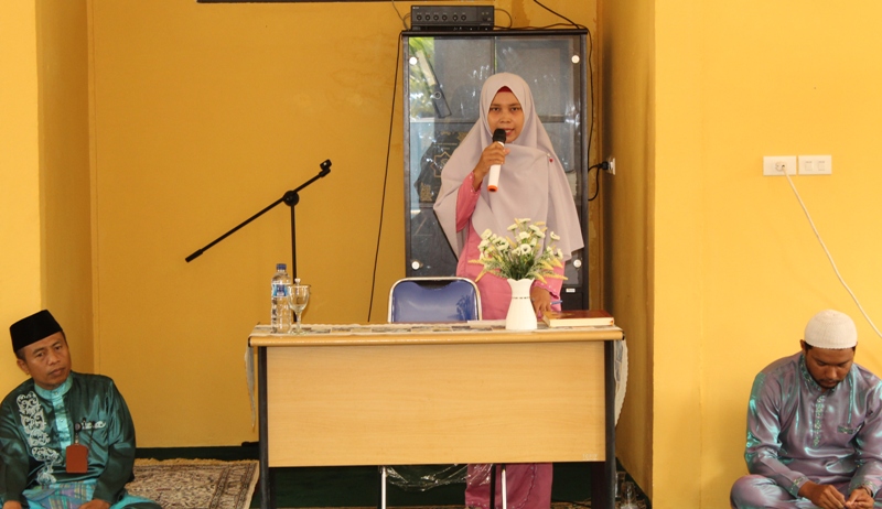 MC (Pembawa Acara), Rodiah, saat membuka acara Isra'mi'raj 1440 H Nabi Muhammad SAW